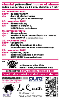29th NOV "CHANTALS HOUSE OF SHAME" @ club BASSY /BERLIN/ GERMANY